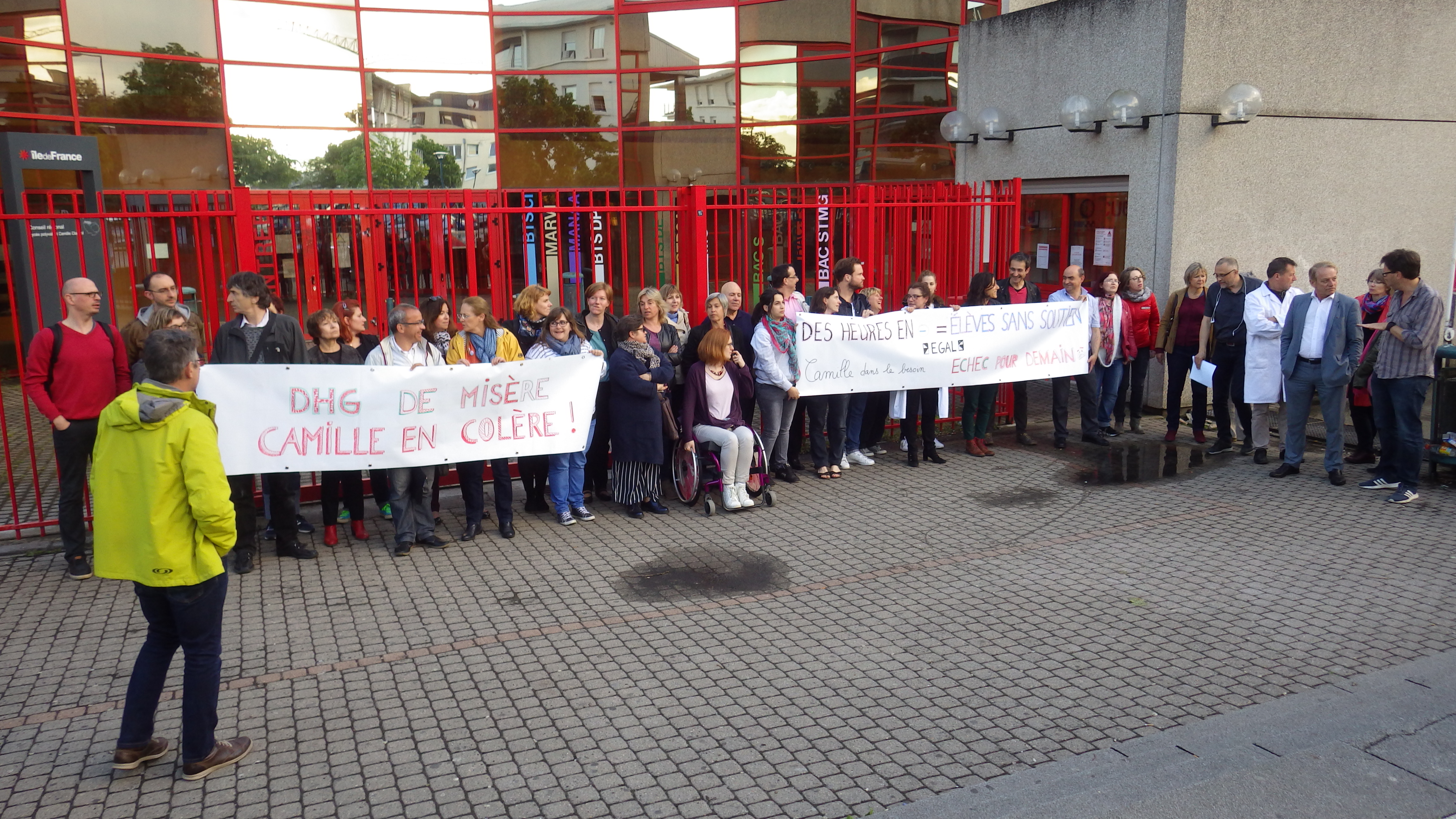 Le vendredi 19 mai 2017, les personnels du lycée Camille Claudel de Vauréal se sont mobilisés pour dénoncer une DGH (Dotation globale horaire) insuffisante. L’Inspection académique accorde 46 heures supplémentaires par rapport à l’année dernière. Mais dans le même temps, le lycée accueillera 97 élèves de plus. Le compte n’y est donc pas ! D’autant que l’établissement perdra 1,5 poste d’enseignant l’année prochaine, car nous avons réussi à sauver un poste en mathématiques mais au détriment des conditions de travail d’une collègue qui sera affectée sur deux établissements. Cet arrangement n’a été rendu possible que grâce à sa bonne volonté et au détriment de ses conditions de travail.