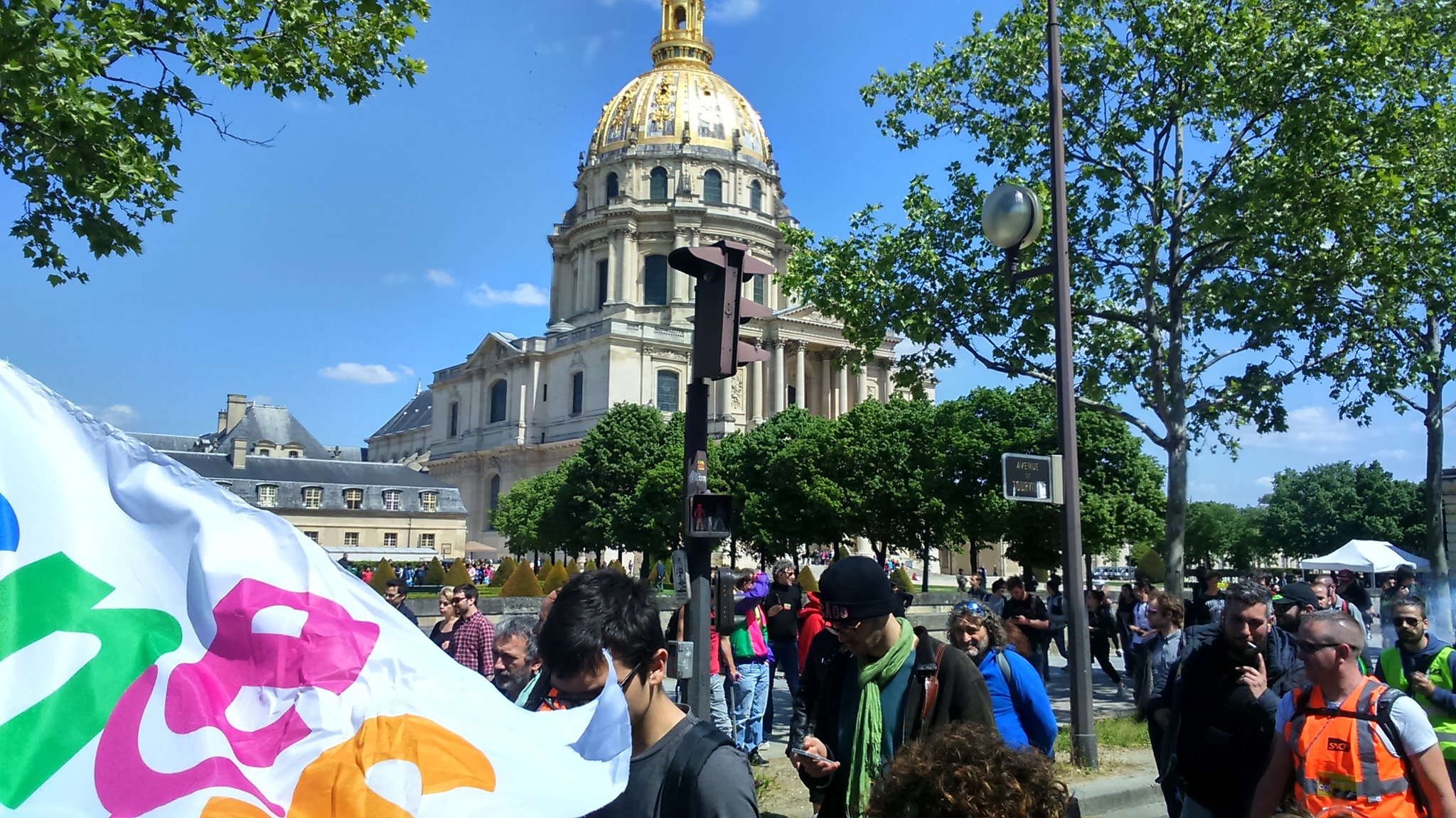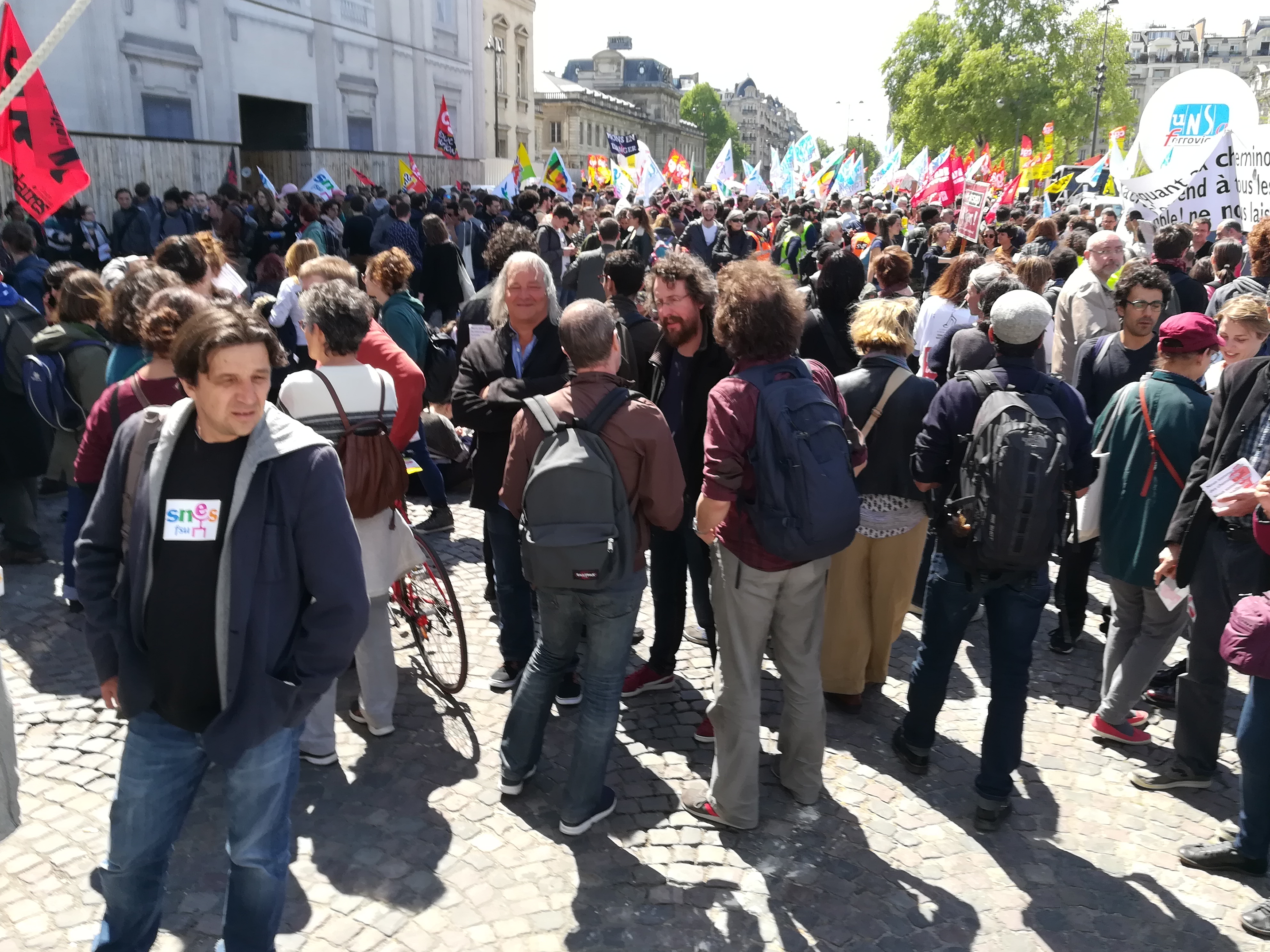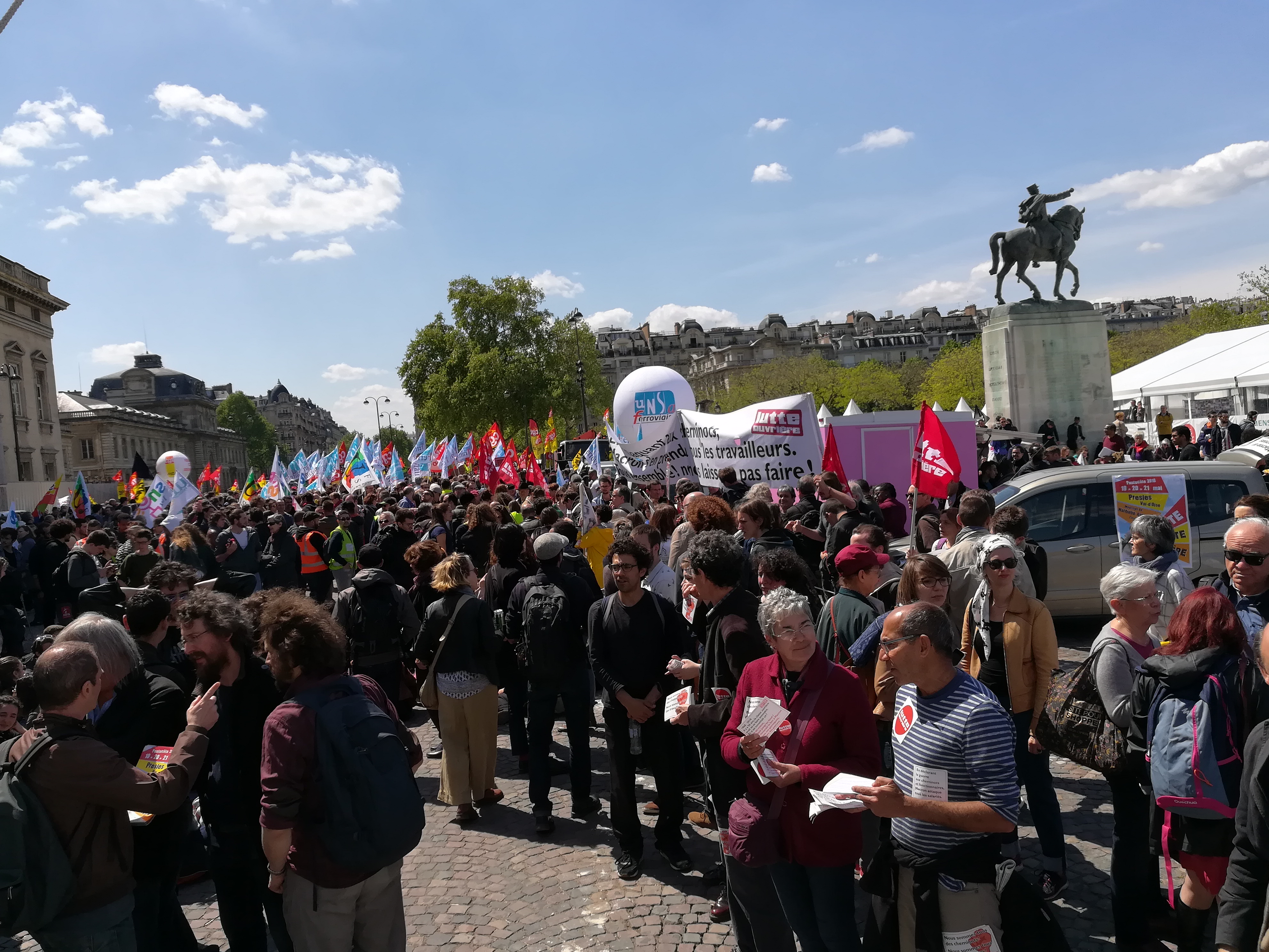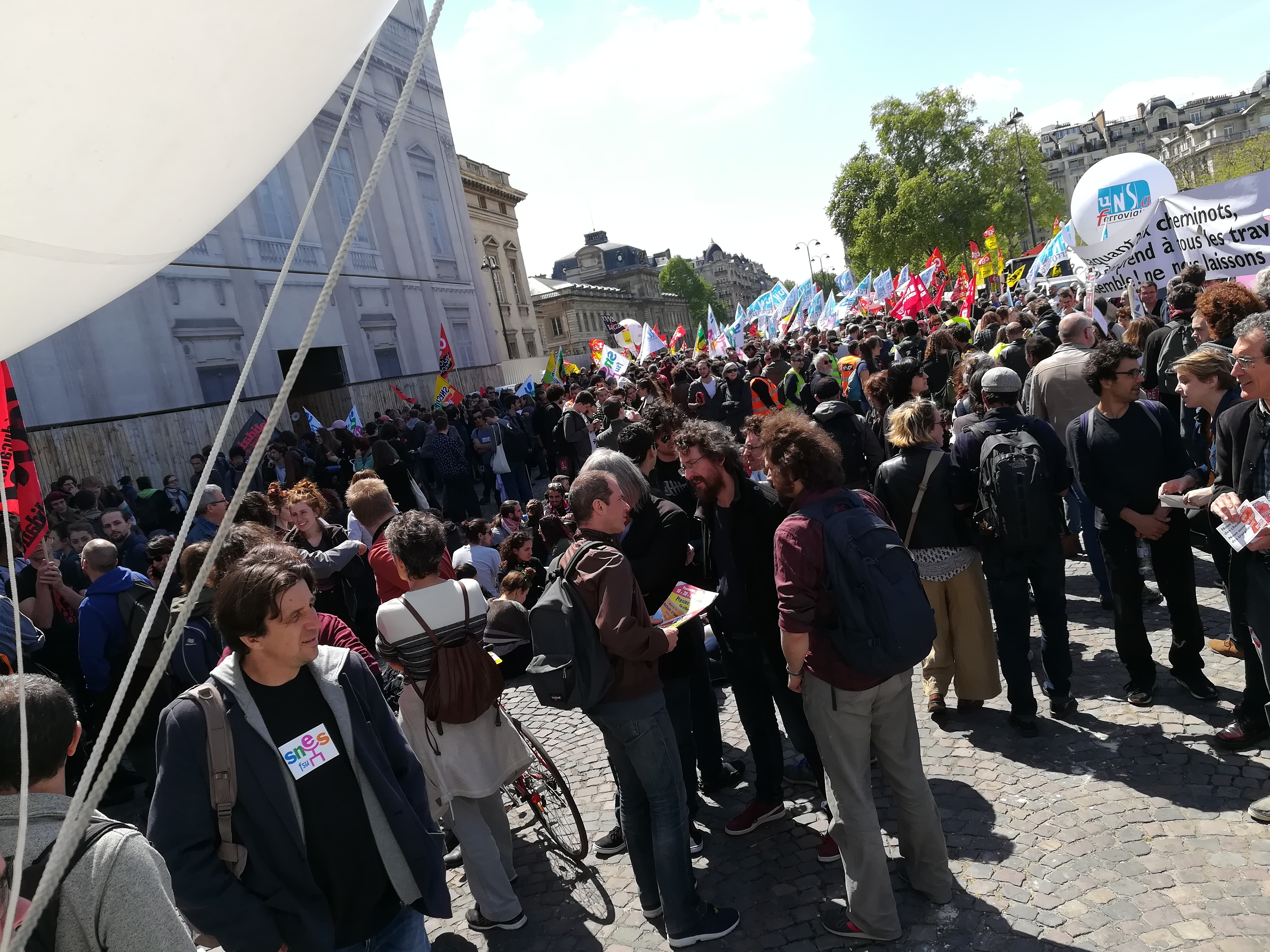 Le cortège, partant de Montparnasse, à convergé vers le rassemblement des cheminots devant l’école militaire.