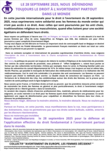 En cette journée internationale pour le droit à l’avortement du 28 septembre 2025, nous exprimerons notre solidarité avec les femmes du monde entier qui n’ont pas accès à ce droit.