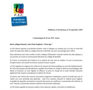 Nous relayons le communiqué de la FSU Alsace :